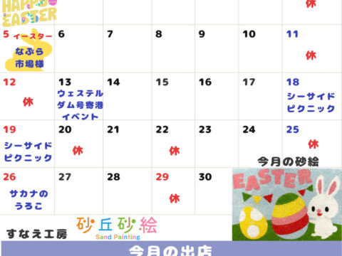 3/29(日)昨日は吉田公園西側町有地での「第16回わちゃわちゃマルシェ」に出店しました。 砂絵アートのワークショップに参加してくださった皆様、そして砂絵キットをご購入くださった皆様、ありがとうございました。 一回体験し 続きを読む →