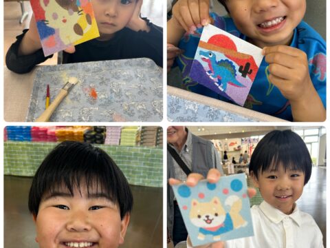 4/5(日)は御前崎海鮮なぶら市場様に出店しました。 砂絵アートのワークショップに参加してくださった皆様、そして砂絵キットをご購入くださった皆様、ありがとうございました。 見本そっくりに作る子、いろんな色で作る子、好きな 続きを読む →