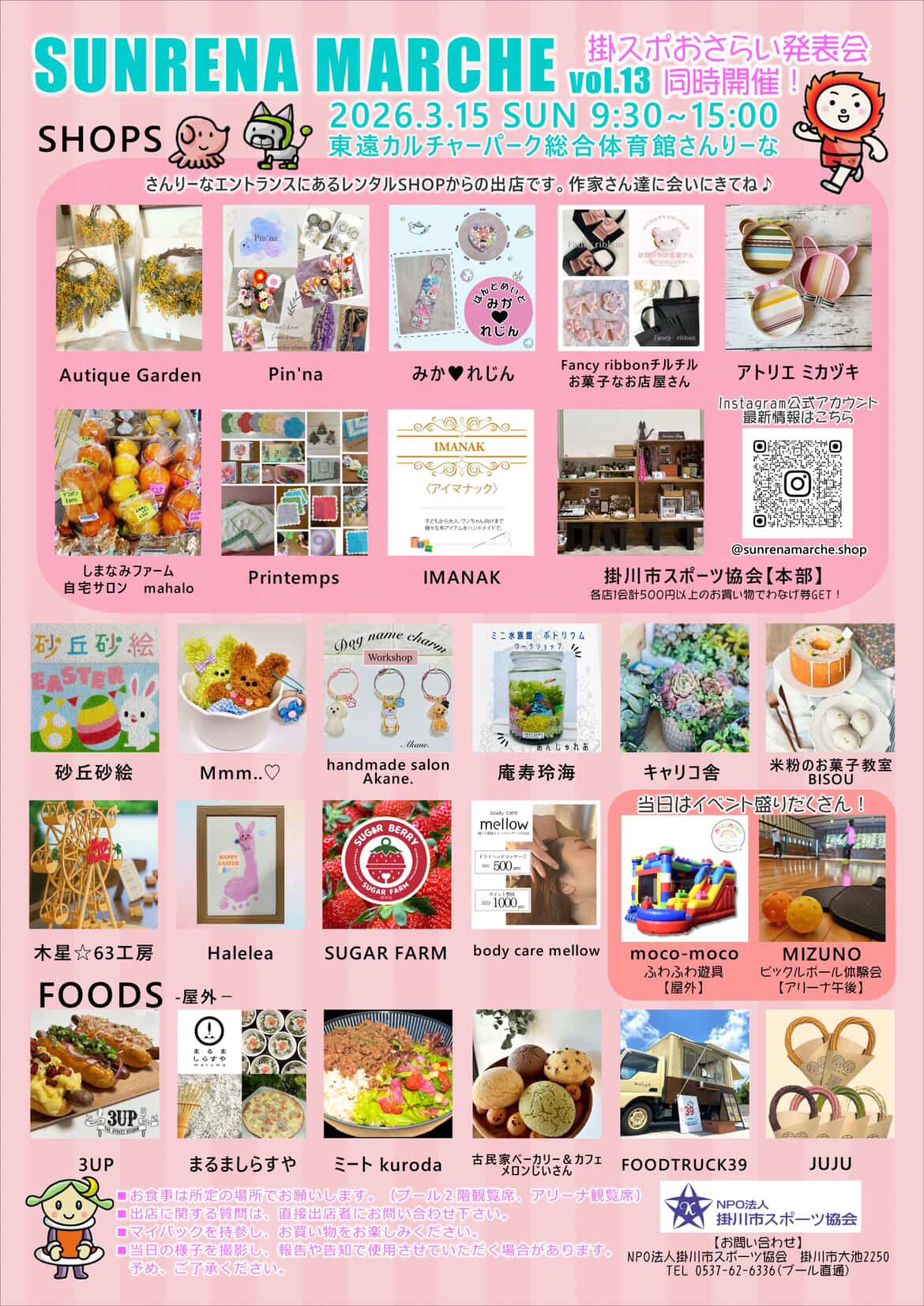 15(日)「さんりーなマルシェ」@掛川市 総合体育館さんりーな様