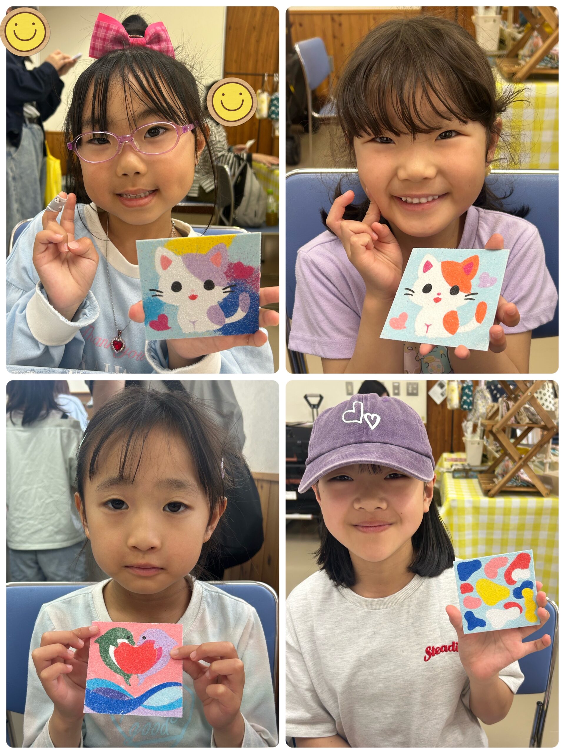4/27(日)「サカナのうろこ 春フェス」に出店しました 投稿日: 2026年4月27日 投稿者: sunaeowner 4/27(日)は、静岡県営吉田公園様にて開催された「サカナのうろこ 春フェス」に出店しました。朝からたくさんのお客様が来場されました。 砂絵アートのワークショップに参加してくださった皆様、ありがとうございました。はじめましての方、お久しぶりの方、皆さんのキラキラな笑顔とかわいい作品に癒された1日でした。 主催の皆様、出店者の皆様、お世話になりましてありがとうございました。
