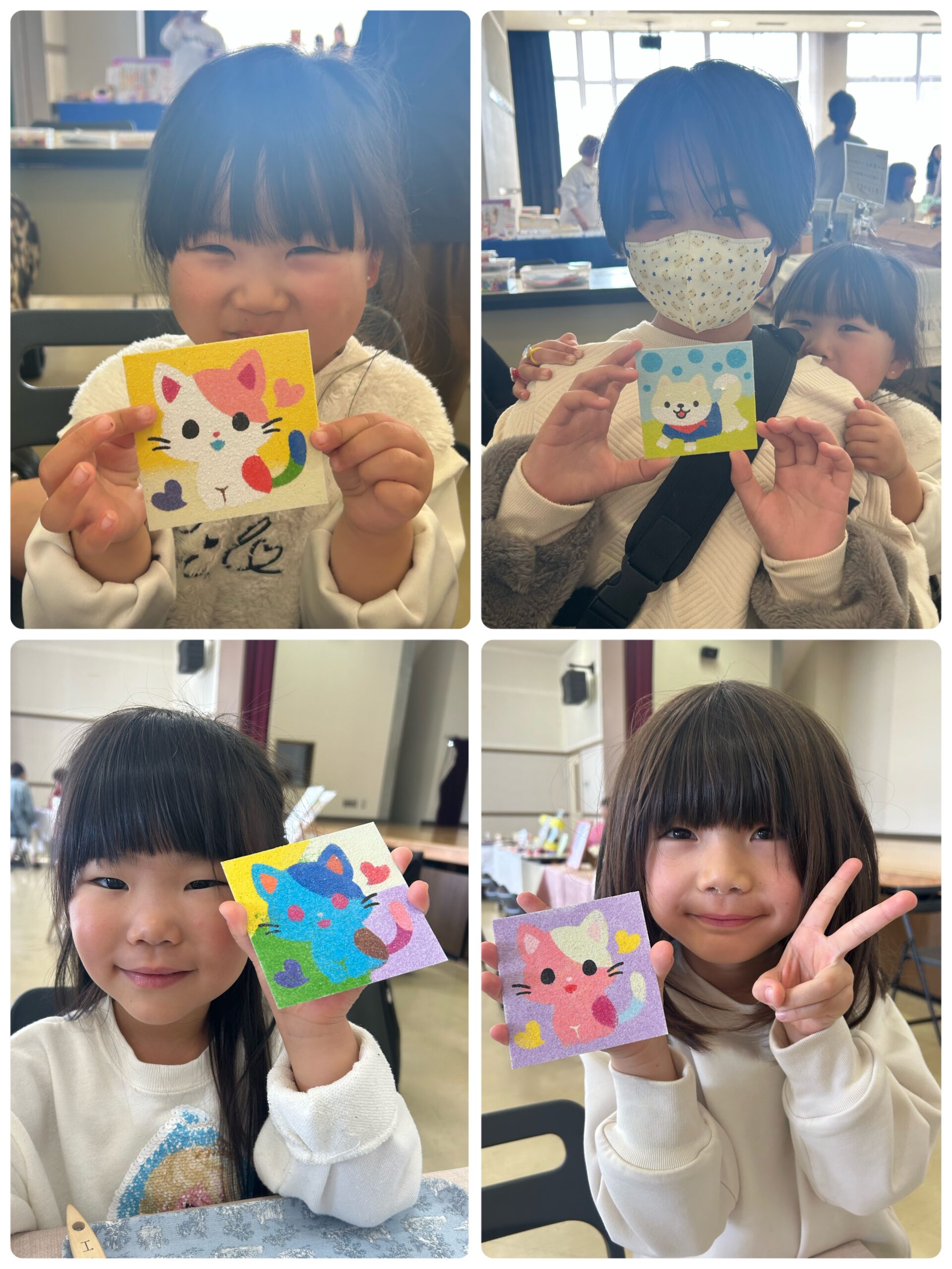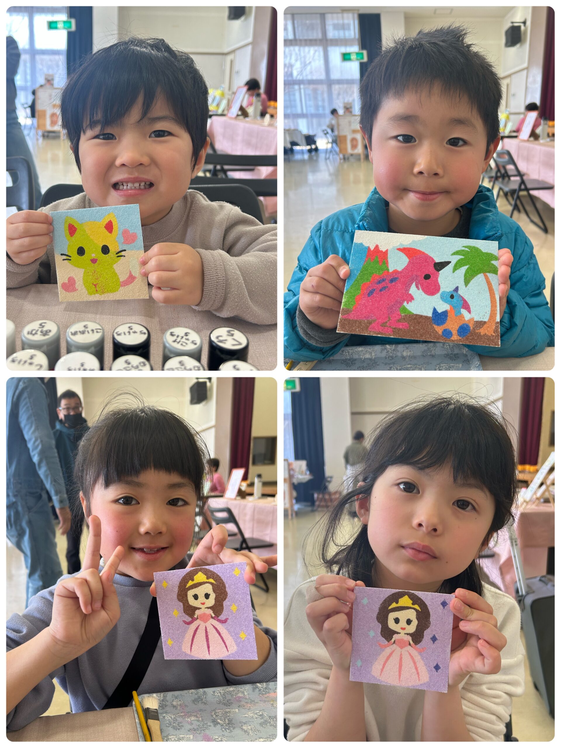 2/22(日)「ファミリーマルシェ」に出店しました 投稿日: 2026年2月25日 投稿者: sunaeowner 2/22(日)は、磐田市福田農村環境改善センター様での「ファミリーマルシェ」に出店しました。 砂絵アートのワークショップに参加してくださった皆様、ありがとうございました。 加えて、準備から当日までお世話になった主催者様、一緒に出店してくださった出店者の皆様、おいしいピザやコーヒーなどで癒してくださった飲食店の皆様、ありがとうございました。