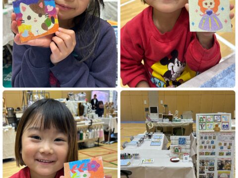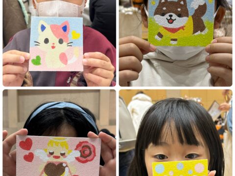 12/14(日)「クリスマスを彩るハンドメイドマルシェ」に出店しました 投稿日: 2025年12月17日 投稿者: sunaeowner 12月14日(日)も磐田市新造形創造館様にて開催された「クリスマスを彩るハンドメイドマルシェ」に出店させていただきました。 砂絵アートワークショップにご参加くださった皆様、砂絵キットをご購入くださった皆様、本当にありがとうございました。 2枚作ってくれた子を始め、ぐるーっと回って戻って来てくれた子、以前にも作ってくださった男性など多くの皆様にご参加いただきました! 企画・準備・当日の運営に携わってくださった創造館のスタッフの皆様に、心より感謝申し上げます。 また、一緒に出店された出店者の皆様、お疲れ様でした&ありがとうございました。 それでは、14日にご参加くださった皆様の素敵な作品と笑顔をご覧ください♪