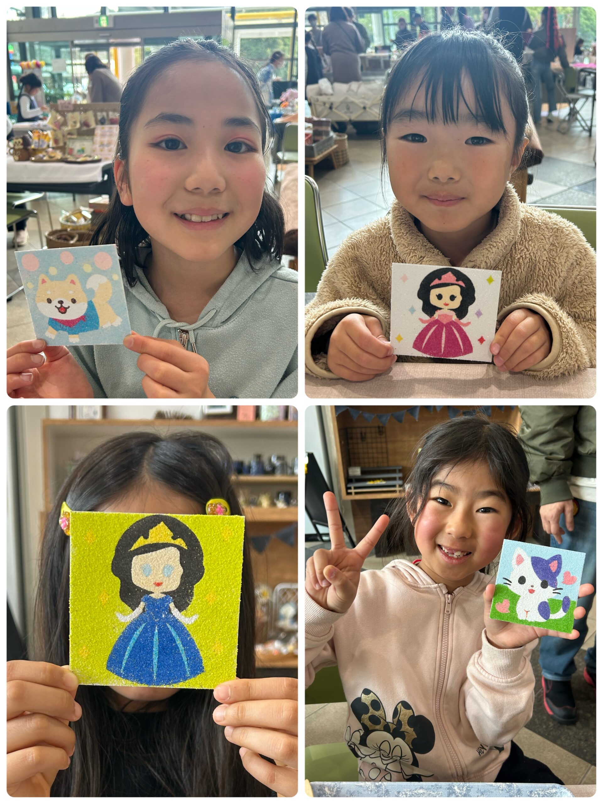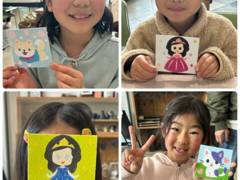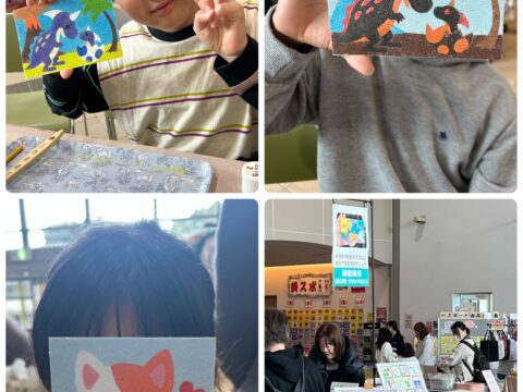 2/28(土)「にこにこKIDSマルシェ」に出店しました 投稿日: 2026年3月2日 投稿者: sunaeowner 2/28(土)は袋井さわやかアリーナで開催された「にこにこKIDSマルシェ」に出店しました。 砂絵アートのワークショップにご参加くださった皆様、ありがとうございました。 作家仲間のhanayou様が砂絵好きなお嬢様と来てくださったり、みか♡れじん様が制作に来てくださったり、先日体験会を開催した「りとむ様」の利用者様が来てくださったりと、嬉しい再会がたくさんありました。 ワンちゃん好きなお嬢ちゃんのためにママさんが制作してくださったり、3歳のお嬢ちゃんが一人で完成させたりと、心に残る場面も多く、とても楽しいマルシェになりました♪ チラシ作成などの事前準備から当日の場所割りや見回りまで、主催の皆様には大変お世話になりました。ありがとうございました。 また、周りの出店者の皆様、美味しい飲食店の皆様、カラーサンドのいろは様、たくさんお話ししてくださりありがとうございました。