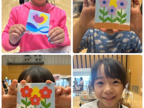 10/26(日)磐田市新造形創造館様での「キッズマルシェ」に出店いたしました 投稿日: 2025年10月30日 投稿者: sunaeowner 10/26(日)は磐田市新造形創造館様で開催された「キッズマルシェ」に出店いたしました。 砂絵ワークショップに参加してくださった皆様、そして砂絵キットをご購入くださった皆様、ありがとうございました。 今回は500円均一のワークショップでしたので、【フレーム付き ちっちゃいすなえ】を作っていただきました。名刺サイズでシンプルなデザインなので短時間でできあがります。 そして、飾れるように透明フレームに入れてお渡ししたので、小さくても思い出に残るかわいい砂絵アートになりました。 最後になりましたが、創造館のスタッフの皆様、一緒に出店された皆様、お世話になりましてありがとうございました。